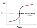 Equivalence point > 7. Curve ends at the pH of the strong base.