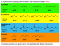 a measure of how readily a substance vaporizes; decreases with increasing hydrocarbon chain length and strength of intermolecular forces between organic compounds