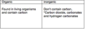 Not formed from living things or the remains of living things; can contain carbon (e.g. carbon oxides and carbonates).