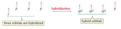 orbitals involved in covalent bonding in an atom are hybridized so that they are identical in properties, and those properties are intermediate to the properties of the original orbitals