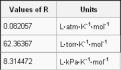 the constant in the equation of state of an ideal gas - symbol R, 8.31 m^3 Pa K^-1 mol^-1