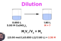 Formula used to determine how to create a solution of desired concentration from a stock solution of known molarity and volume; 1 indicates the initial concentration and 2 indicates the final concentration