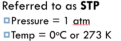 standard temperature and pressure (273 K and 100 kPa/1 atm)