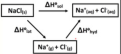What equation links the enthalpy of solution with that of lattice and hydration?
