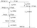 thermochemical cycle relating the various energetic steps involved in the formation of an ionic solid from the relevant elements